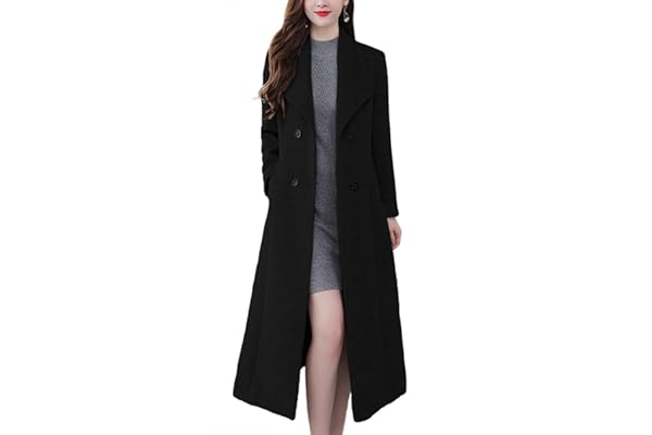 #1:chouyatou Women's Chic Shawl Collar Work Double Breasted Maxi Long Wool Pea Coat